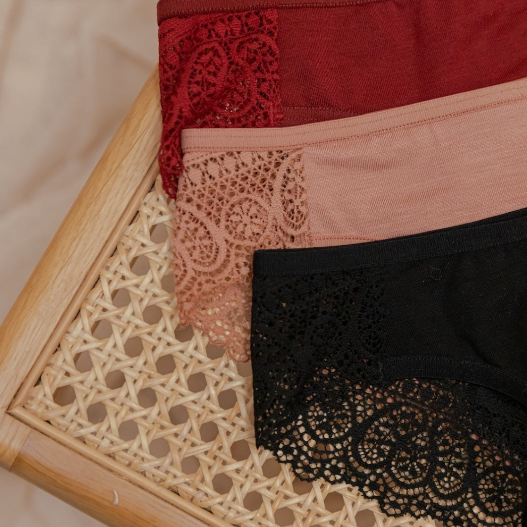 Queríamos desenhar cuecas menstruais que fossem mais do que apenas roupas interior absorvente; que fossem uma celebração da feminilidade, um abraço suave nos dias mais desafiadores, um piscar de olho à nossa confiança.